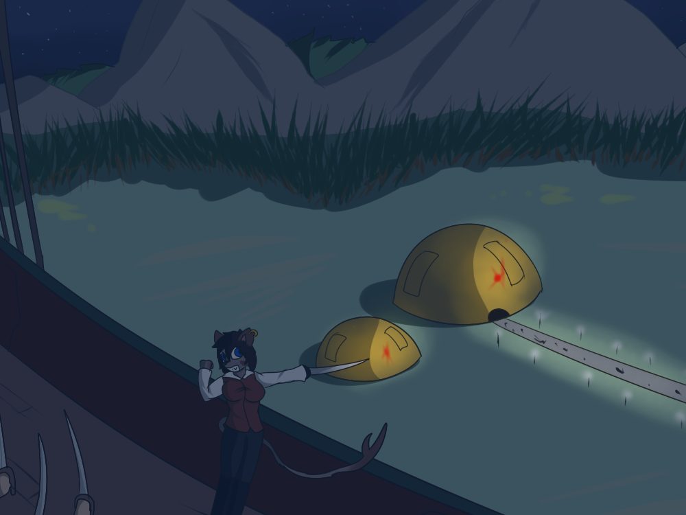 “Welcome back cap’n. Don’t worry, I’ve been watching over Creepo here the whole time, and made sure he didn’t take anything out as a souvenir.”