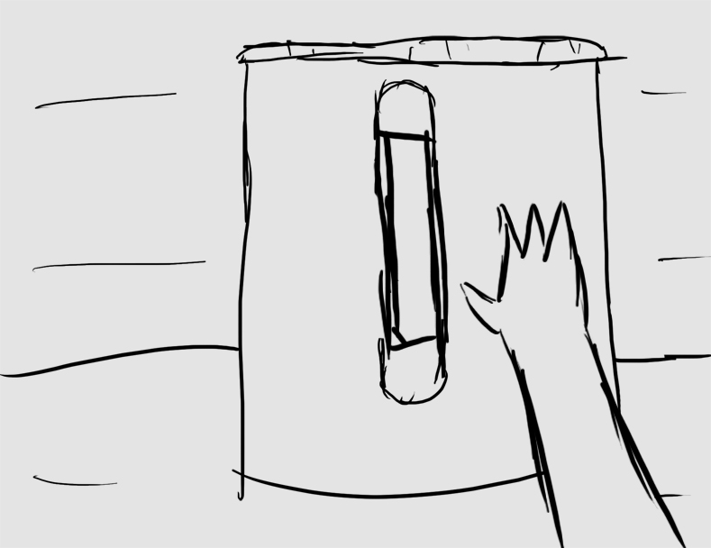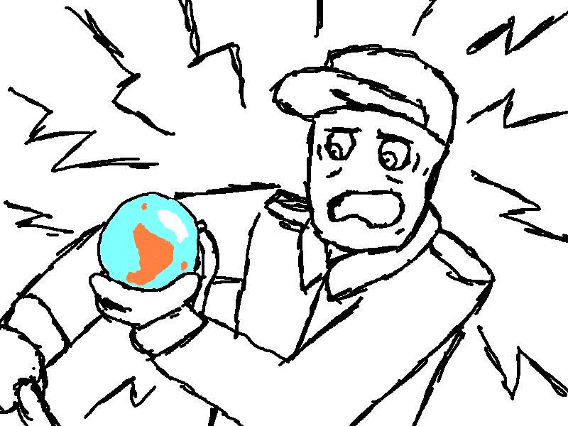 GIANT is sucking on glass thing? he smelly. there is big FIRE.