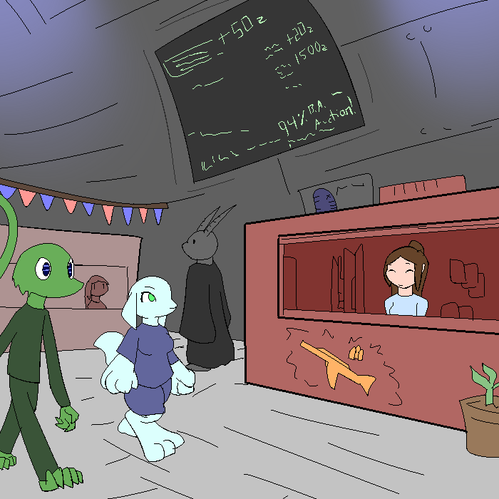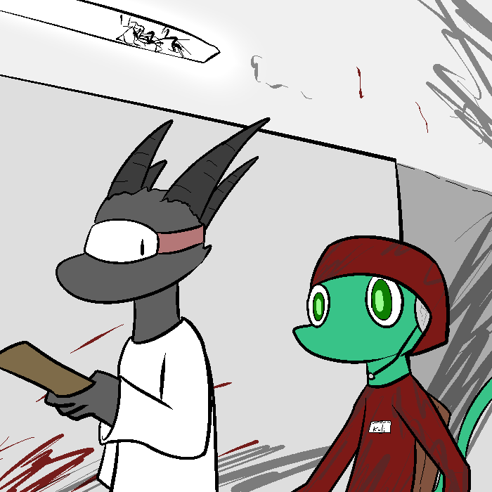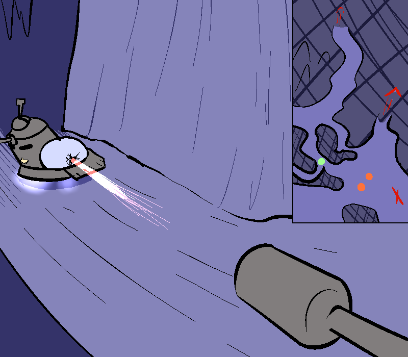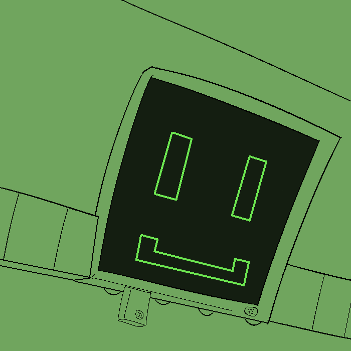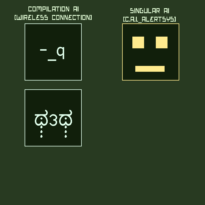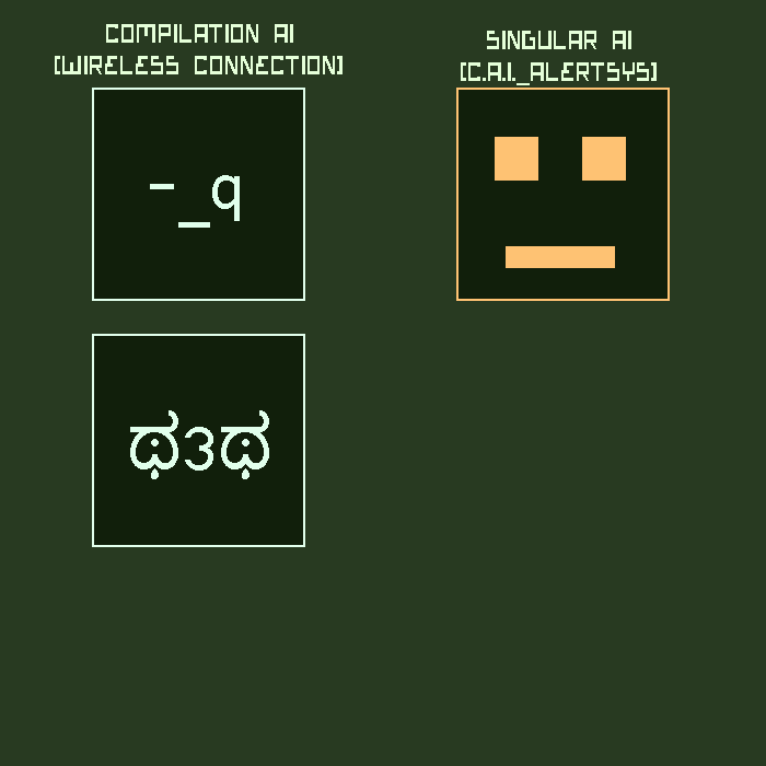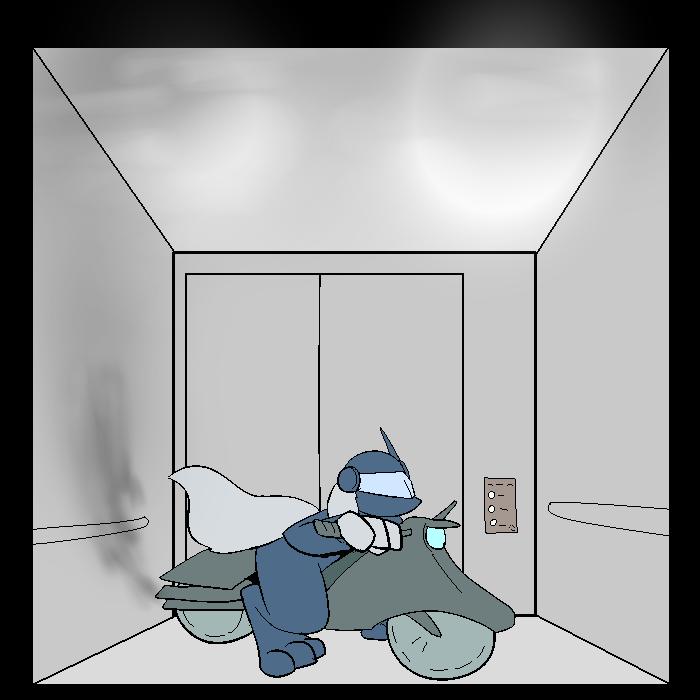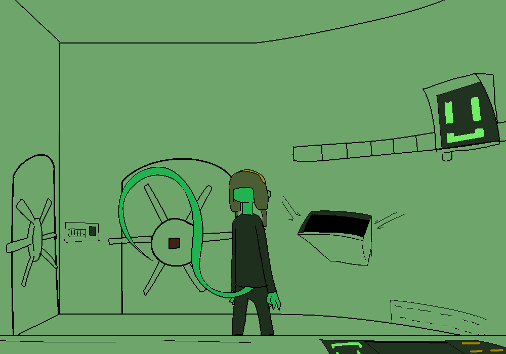 "Okay! Let me activate the main room camera. Right now we're in the lobby. The door to your left goes outside, and neither of our brains are H20 compliant. The door at back wall leads to the storage container. We'd need to go through the standard menu to open it, but they're horrible. Just, awful. It's amazing the technology this hunk of metal has, all laced with a poisonous menu. You might be able to get something to happen with random commands, too. You'd think going through the voice menu would be less risky. Nope."