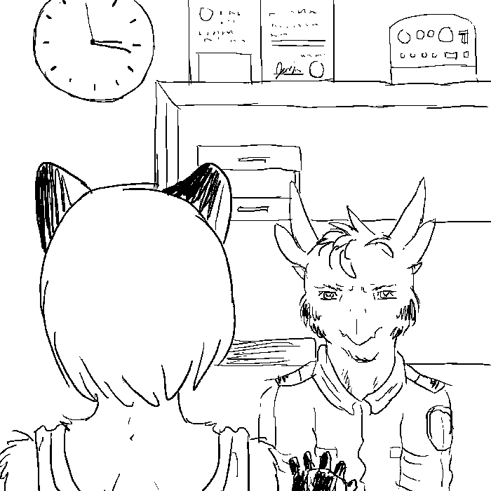 Rina proceeds to tell the officer everything: what happened at the forest, the house of the male raccoon, the hospital, and her condominium. Rina also gives everything she knows about the Darkness and the Light. She, however, does not mention the Darkness's blaming of her for everything. The officer does not look convinced even if he is paying close attention to her words.