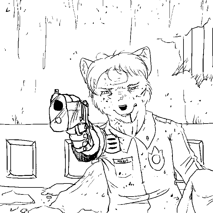"Looks like you'll have to track him down then. Eventually some of the others should find him before you though." Rina notices the officer is keeping his firearm steady. It is apparent he still does not trust her.