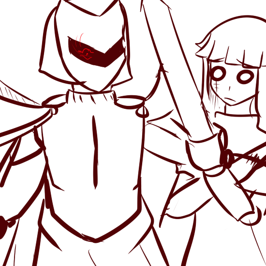 "Alice, I may have to step out soon. He can only harm you with doom and physical attacks, if you keep to the air I trust you can finish him off easily before he can cast and effect you with doom. You have my confidence, but do not risk your life.'