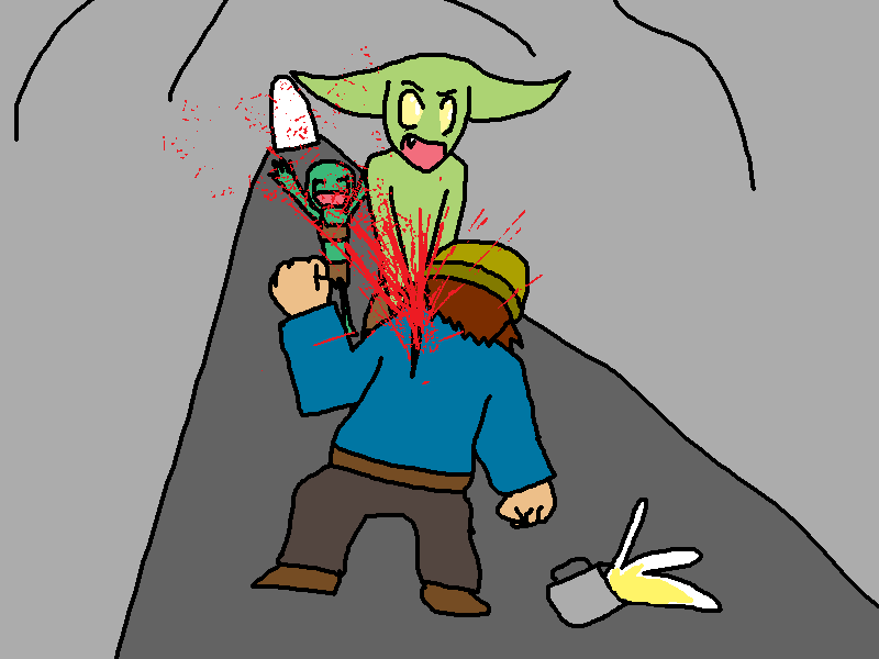 And finally I think the main hall needs a bit of decoration, A statue should serve nicely, and what best to inspire allies and terify enemies then a picture of two fierce goblin warriors (Stozo and Ozud) worshiping the ground around the feet of Amxu The Great: Goblin Leader?