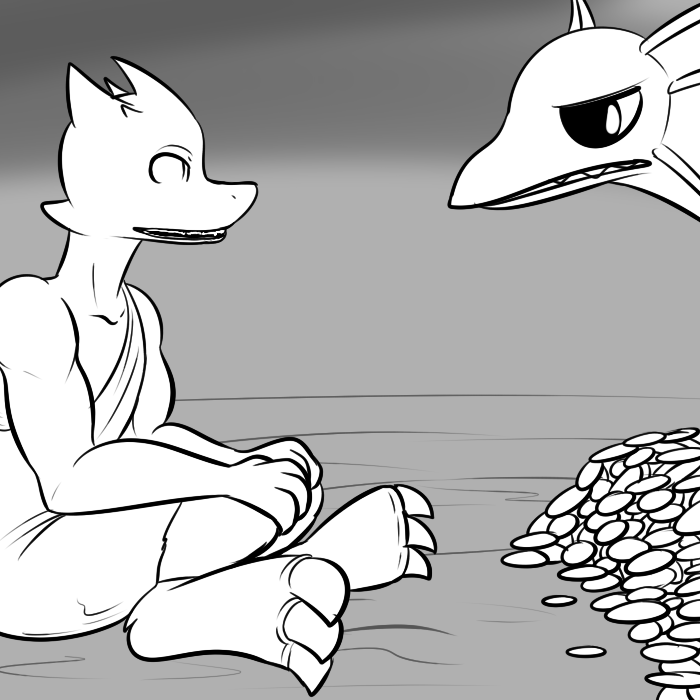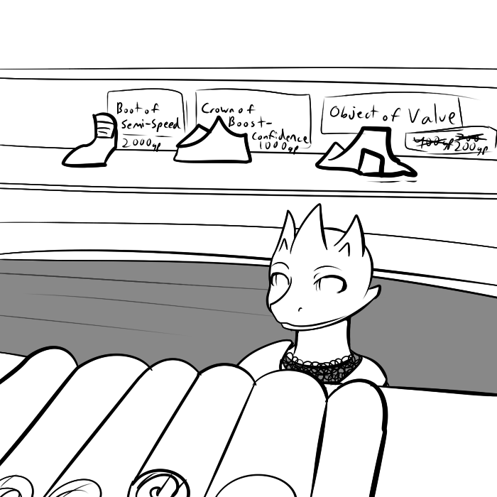 >However! I was impressed that you were even suspecting that the lizard was me, and even more when you knew and did not care. Therefore, although risky, I will entrust you with legitimate errands. You will get your stories, and I will fund your journeys, and you will do various tasks, some easier than others. Furthermore, as I do not want to invest in you simply to have an embarrassingly pathetic fate, I have just finished smoothing things over with the goblins. The magic shop owner will accept your payment without attempting to punish you for the ill placed debt. So for today, rest. Do whatever it is you do. I will call on you later."
