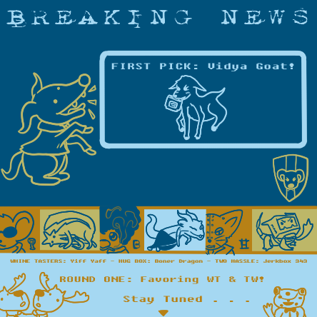 ”Yes, we totally agree but we have no idea what the Always Winners have up their sleeve. I guess we'll have to wait and see how the second round goes here. With Yiff Yaff going to the Whine Tasters, Boner Dragon easing into the Hug Box, and Jerkbox 343 rudely gesturing at Two Hassle, the last three rounds could be qualify who has an extreme advantage folks. We'll be back with you for round 2 soon! We're Twice Moose...