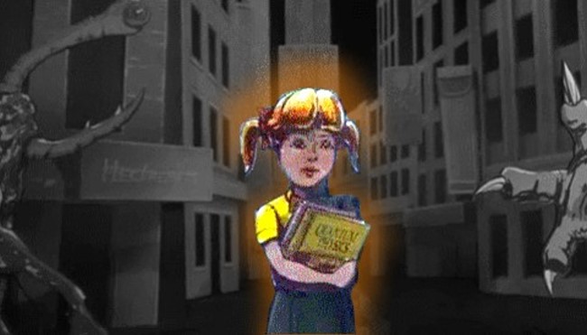 You take her down to the cafeteria area and let her eat to her hearts content. It's there you find out quite a bit about her. She's 17, and apparently has lived at the same orphanage for most of her life. Her left eye is made of glass, and as far as you can tell, she got it after someone shot her in the eye and she somehow survived. The glass eye also serves as her foci, but other than that you're not sure about anything else. She focuses mostly on her food while your downstairs.