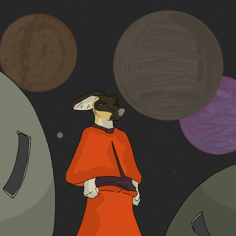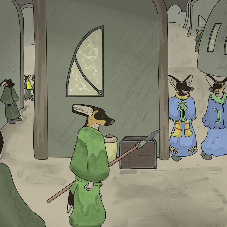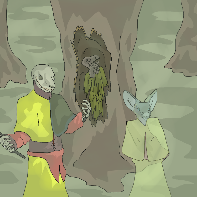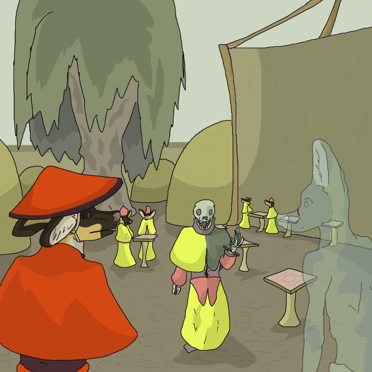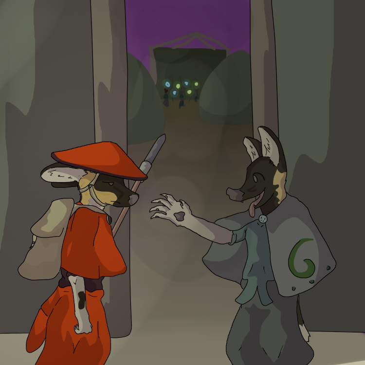 She’s a bug person. They don’t have a remnant of their own—their kind just sort of find what homes they can. She can speak our language pretty well, but she’s a merchant, so that isn’t, like, a surprise. When my family still had some money I had a tutor and I learned some of the bug language. I can’t speak it very well, but I can understand it okay.