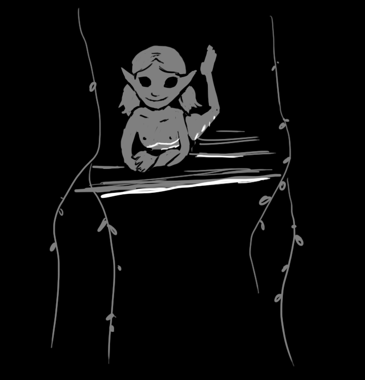 The giggle comes again from, deep in the darkness to your left. "This part doesn't go on the front. I bet you've never seen a girl naked before!"