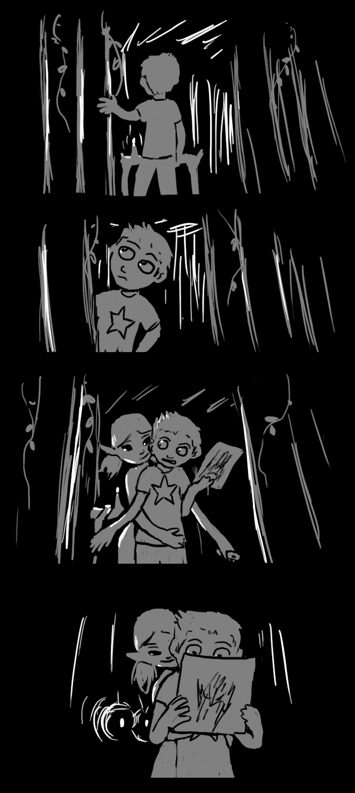 She sits up eagerly. "Ooh, clever. But I'll need some paper, and some light to draw by. Evan, why don't we go into your fort together so I can draw?