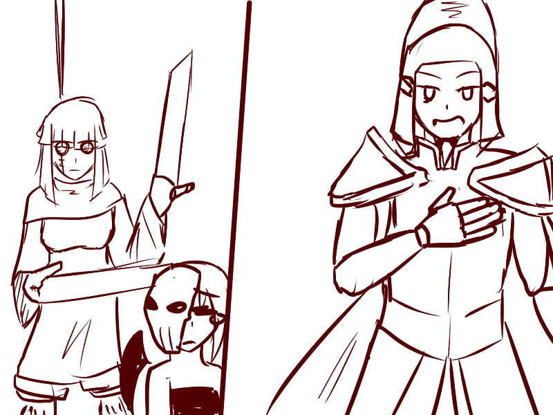 That leaves Meagan, Lilith, Lun, Butler (likewise), Golem, Nix, Lenion, Silva, Solaris, Alalia. Also, our evil side. Meagan's body is occupied by one of these, and I'd like to know that now.