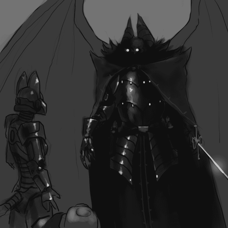 The guards are running down the stairs. I hold the hand and the sword above my head and start laughing. Either I am going to look ridiculous and get shot, or they will be terrified. I need to yell something menacing.
