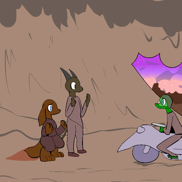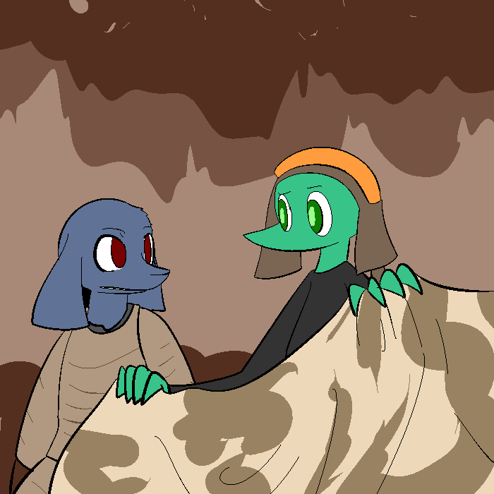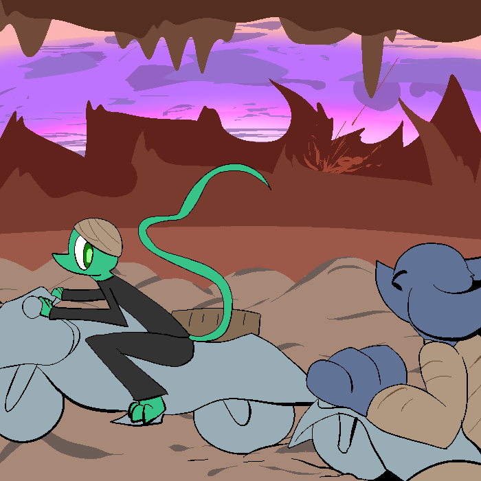 >"You moron, I don't know, we were pushed off the home planet too quick and our engines got shitty repairs! Pretty much a fucking one way trip from there to here, and the queen got her wish post mortem from then on. We hardly fight for the sake of fighting, it's always 'rogues this threat that'. Now that we're on lawless land, now we have to have pretenses! It's backwards. That's enough of that story, I only heard a little bit about Polo after we left, but they didn't find any Salikai before we crash landed here and lost communication with the outside galaxy."