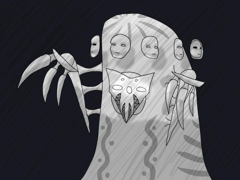 "I don't know exactly what created you, per se, but you exist only to serve two purposes. To gather the things the Shatterer requires, and to provide form for its entrance. When you have everything you need, Nyx becomes an obsession of yours. She's involved in this process too, I believe. You merge either through trading a simultaneously lethal blow, or merge in a... different sense, if you'll excuse me. And from that, the Shatterer is born into the world for the rest of the world's very, very short lifespan. I've seen this happen in different permutations. One time it was just a very enthusiastic handshake. You both seemed very surprised that time."