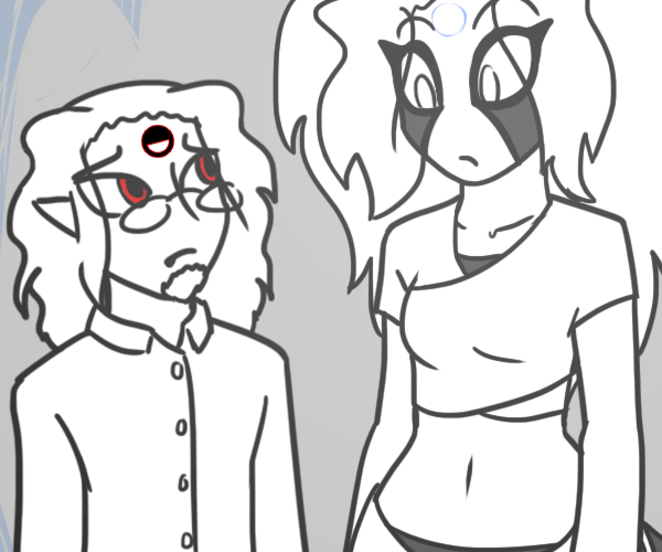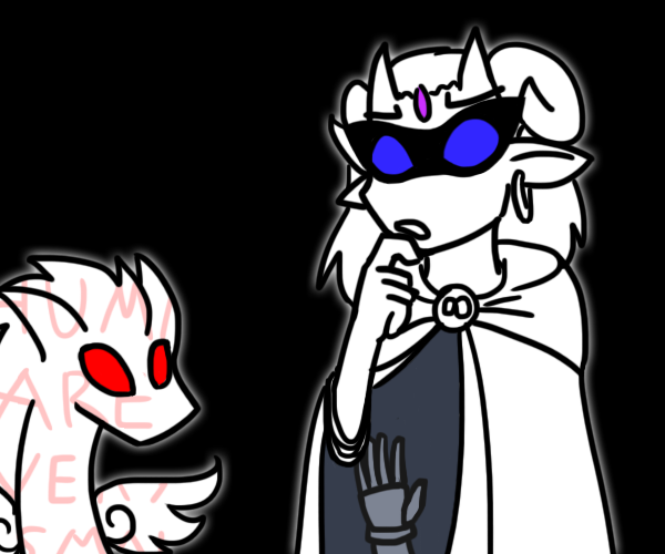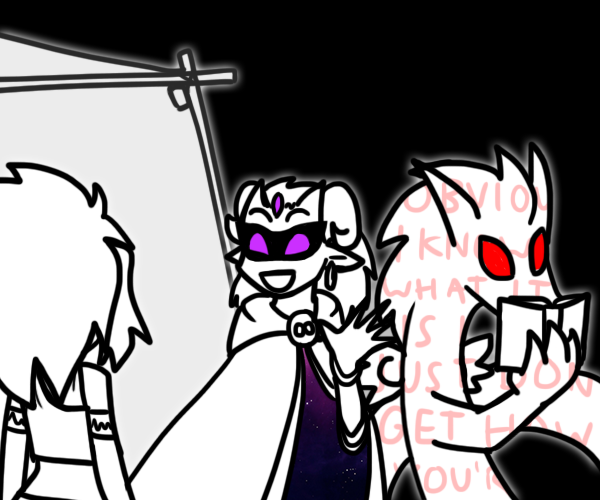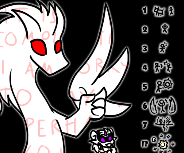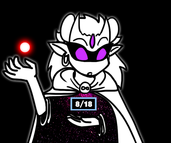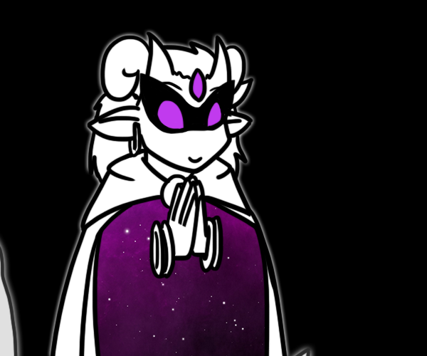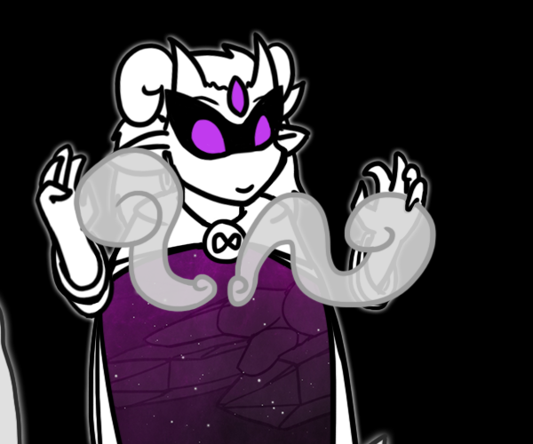 For the characters - well, Saulanna and Wordblood are known. The Exaltation - a glowing blue orb - bears the mark of the Moon: a silver crescent and the silver circle within. (During the Deva Creation, it was the Waning Moon, as well as all the other stages of the Moon.) The new Time Deva: its symbol is the infinity sign, and its color is purple. Its head is modeled after Saulanna, though there are two curled horns on the sides - a sign of Wordblood's influence? Its body is two cloaks - a window to the purple majesty of the starry expanse of space - clasped with a medallion marked by its infinity symbol. Two pairs of bracelets decorated its two arms, connected(?) to its outer cloak.