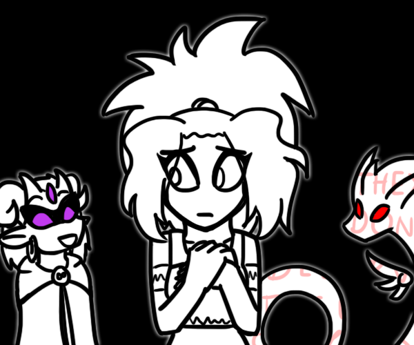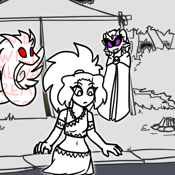 Let us first analyse Saulanna's domain. It is a small patch of land, grassy. A tree of unknown species grows(?) off to the side - raccoons and humans both are able climbers. A small pool of water(?) - with an indication of some importance; perhaps and two rocks are before us. Finally, a small hut of cloth and sticks behind. A place of nature, of human-tamed habitat, I think, born from Saulanna certainly. A humble home - Saulanna has no grand ambition nor desire for great luxuries. Saulanna herself is colorless. An indication of Saulanna's humanity and Raccoon affinity, I say. But to the side, to the new Deva of Time's side, the grass disappears, replaced by those unmarked cubes. A sign of the unusual merging of Queen and Titan? One would expect the Queen would dominate, but the sign of this new Deva is so crudely fused! An incomplete integration, perhaps? Though the cubes lead to the Exaltation's domain - perhaps the cubes lead to the holder of the Exaltation, then to the the Exaltation itself?
