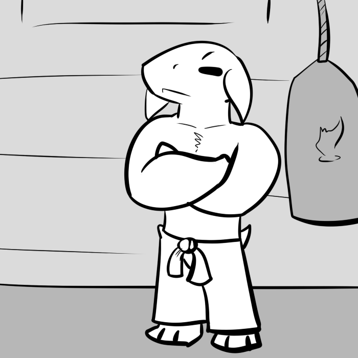"THE PUNCHING BAG SEEKS VENGEANCE UPON WEAKLINGS. PUNYLOCKS shall carry the PUNCHING BAG into the DOJO and proceed to RE-BEAT IT INTO SUBMISSION. If CHOP arrives and the PUNCHING BAG is not CRYING PUNCHING BAG TEARS than PUNYLOCKS shall henceforth be known as ONFIRE."