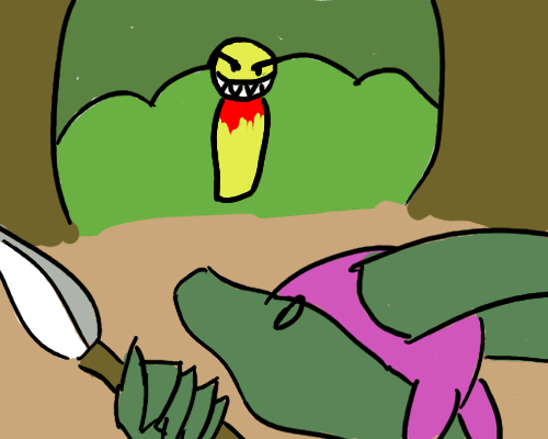 Poke it with your spear once to make sure it still floats there. Then check the bushes where it came from.