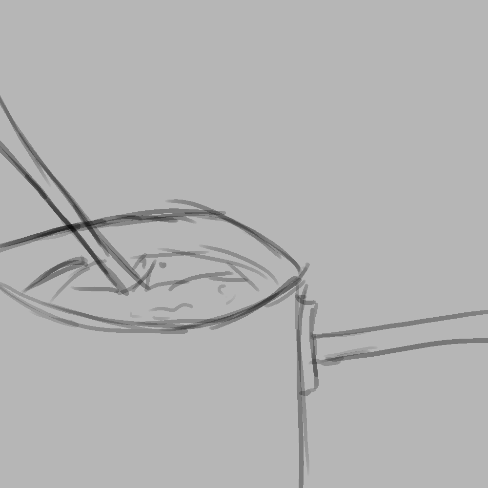 I set a pan on the stove and turn the burner on, pouring the broth in.