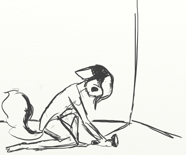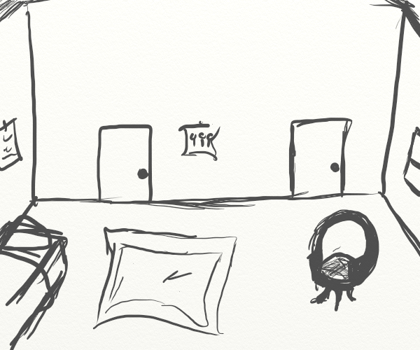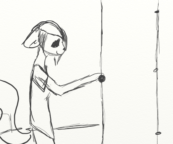 I feel my way around the room until I find the door, tripping over the little furniture Cloudy's allowed me to have in here. I do my best to fiddle with the knob, but I can't seem to get it open! Oh, oh no no no.