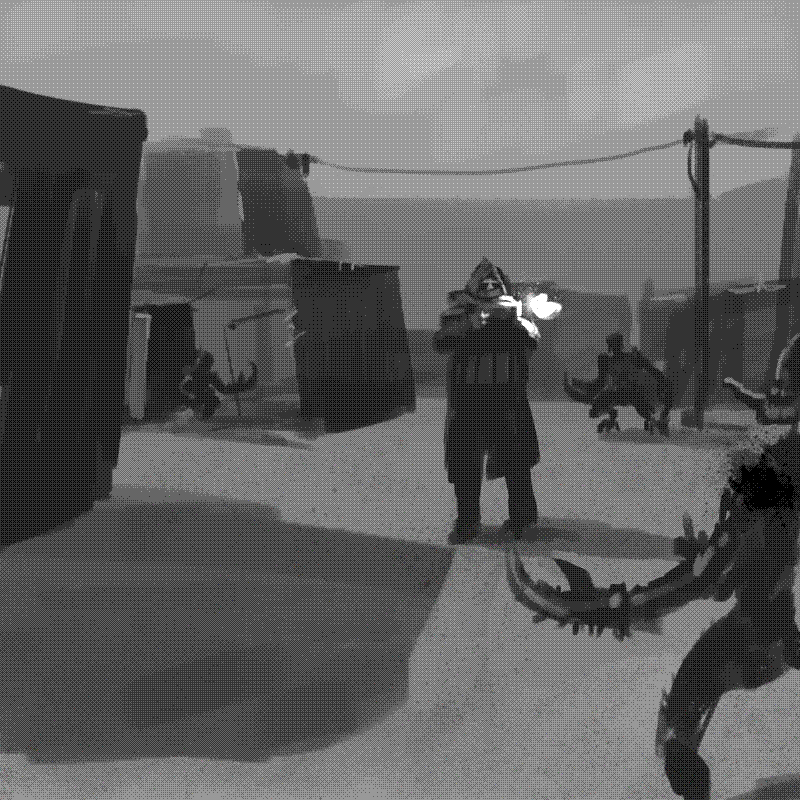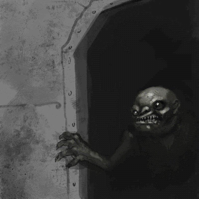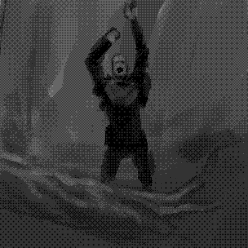 I shout to the others, and begin firing into the darkness. I do not know if I am hitting anything. It is difficult to see in these lighting conditions. With Gryr covering me, I try to free the harpoon lodged in Lox. It is a steel cable, and I lack the tools to cut it quickly. As I try to hopelessly sever it with my knife, the cable begins to tighten, and pull on the harpoon. I make an attempt to resist, but I cannot. Lox is dragged away into the darkness.