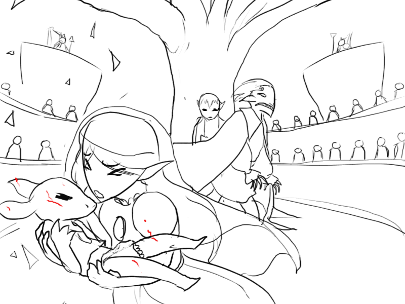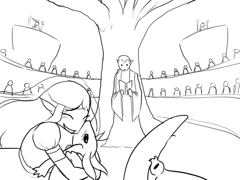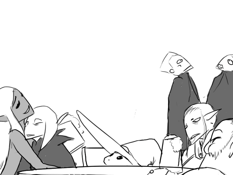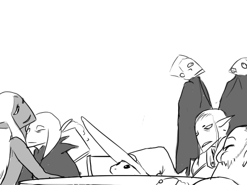 He explains everything to the king and his followers; about his curse, his lost kingdom, the war against the Skullking, Lucinus' treachery and defeat there of.