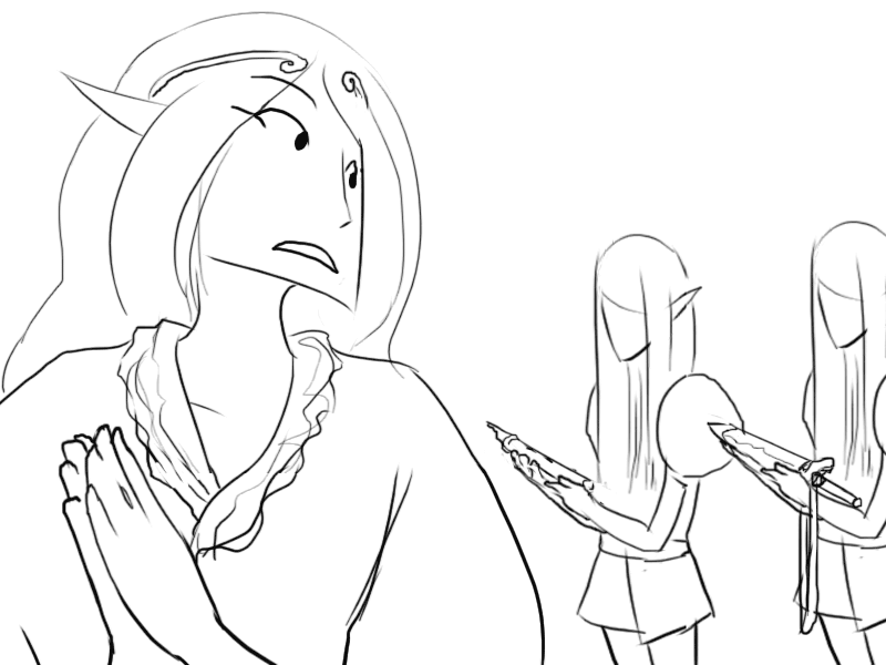 >We shall speak of this in private, my daughter. Right now, I need to have him dressed and presented in my court so we may speak in detail!"