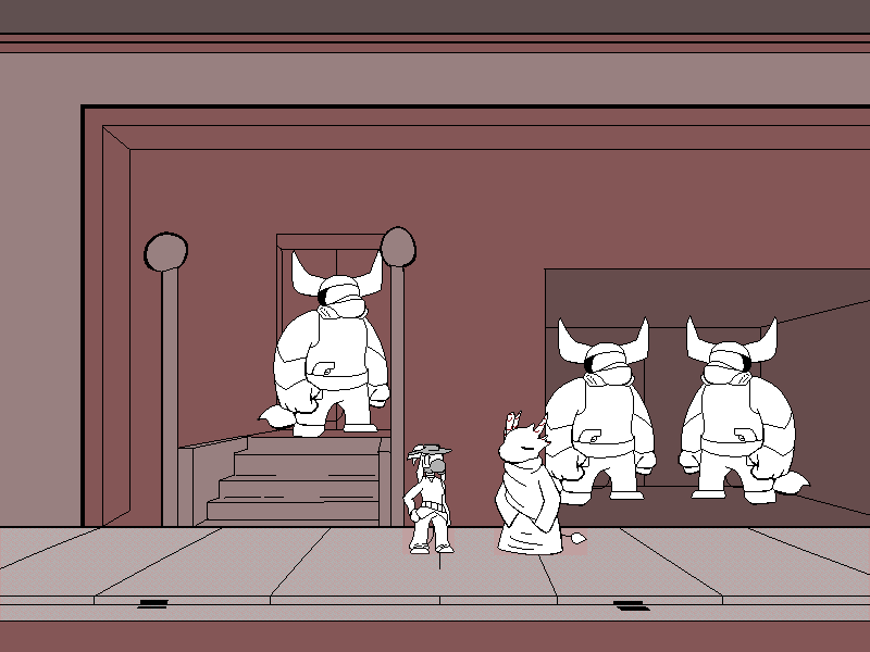 Alright then I say we're set and ready to go. As for an attack plan I say we go in first with both our swords going and tell everyone to clear out. If that fails have the robot shot teargas into the room to clear our all non-metal (jetal or otherwise) out. as long as they don't have gasmask on. Then you focus on any jetals that stay and have the robot deal with any non-jetal and have the other jetal help whoever needs it most. Oh and maybe drop unity's name as it seems to have a lot of fear built up around it and could clear more of them out.