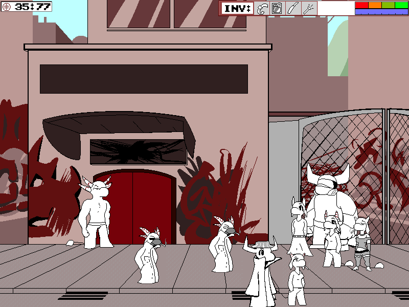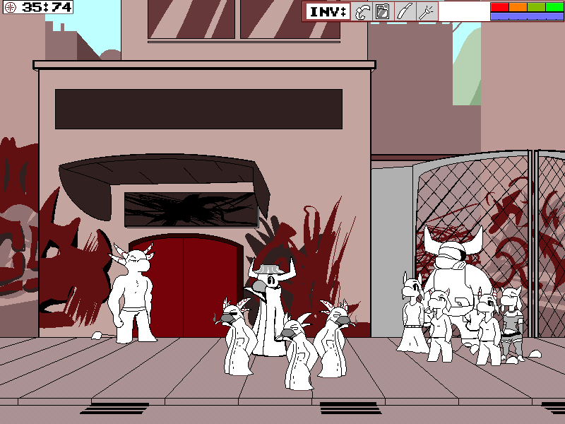 In the meantime, if this is someone else's building, we need a story. Actually, let's test out the natives' response to our appearances, that'll be important info.