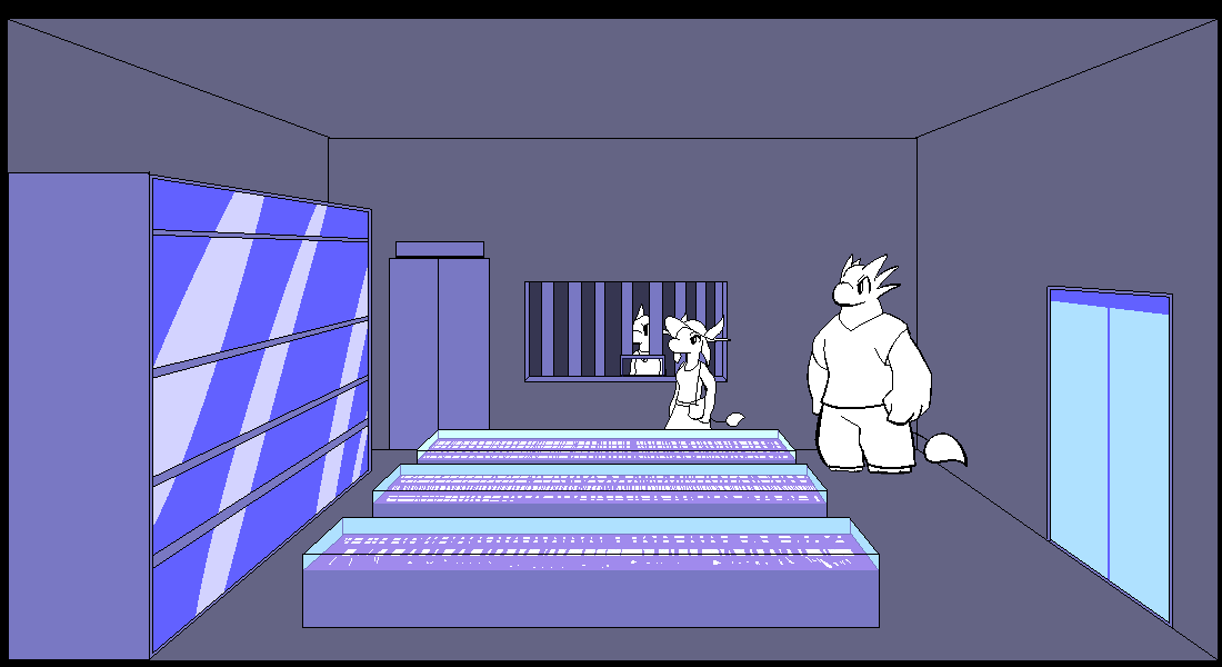 "Hey. You've met Pax, the jetal. This is Check, our combat robot that'll be good with non lethal takedowns of non jetal personnel." the guy from the Web says. "Looks like an old model, but the parts are fresh, and AI's good. You ready?"