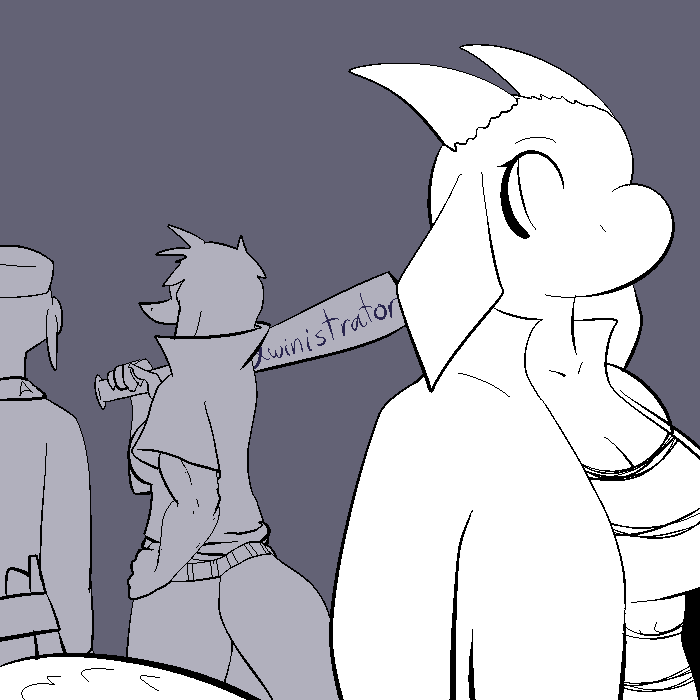 Okay, Guardsman will take the lead on intimidating all the non-jetal and non-combat 'bots into getting the hell out before the fighting starts. However, just so he knows, you might take over if it looks like the situation calls for a different plan of action going in. Also tell him that if he does good on the intimidation, he gets to use the plasma sword A in the fight.