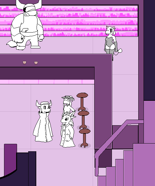 Alison gets the camera drones from Polatt, and asks him to keep an eye on Anya if possible, before she heads to pick up a large trenchcoat and sunglasses followed by the parking level. She will start transforming into mongrel, with trenchcoat and glasses.