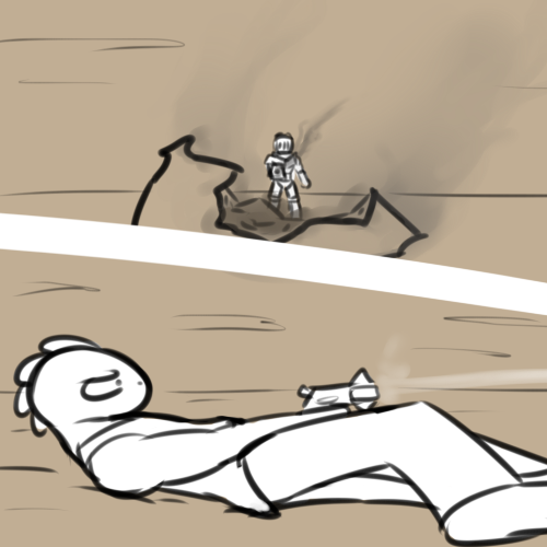 Oh, but all joking around aside, the space ship actually is our best bet here. Bounties are pretty much a given, and chances are we'll find ammunition on board.