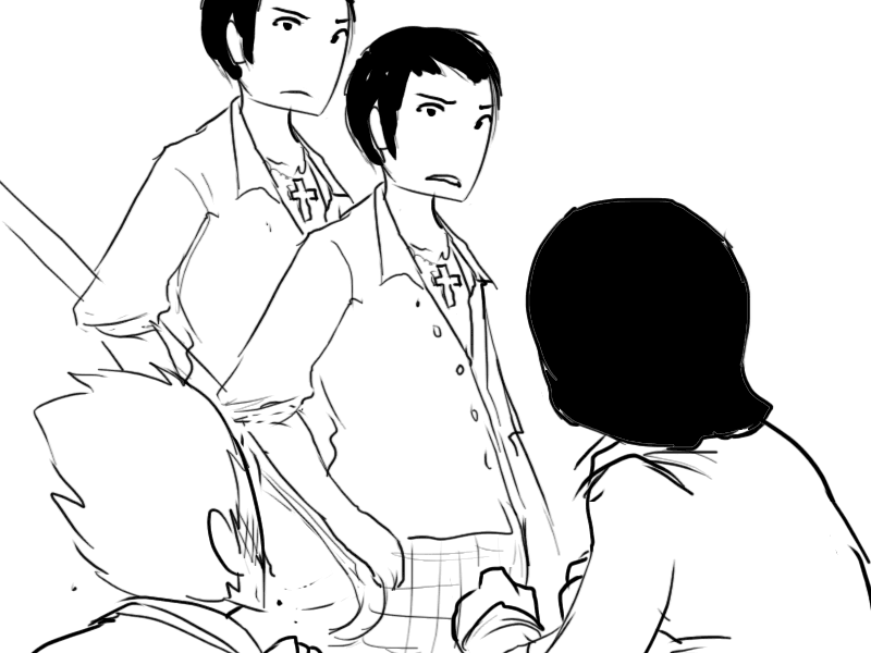 If you do, know that the dark haired girl carries a set of butterfly knives in her coat and shoes. Dunno about the other, we haven't seen her mind yet.