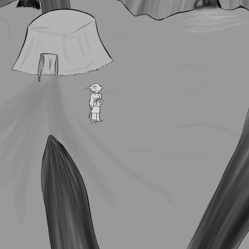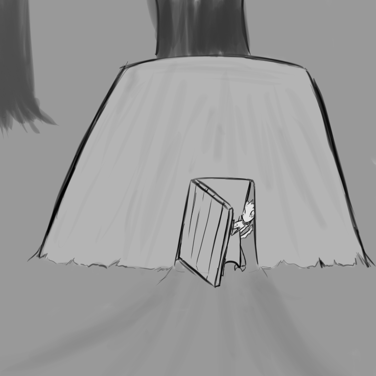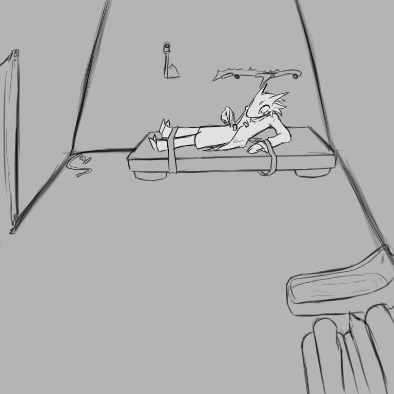 The cloth strips with which you were bound to the table are too long to fit into your pockets, and the clay table is too heavy for you to lift. Even if it wasn't, the door to this building appears to open toward the outside and barricading it wouldn't be terribly useful.