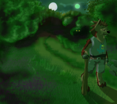 Devolving into insanity again, are we? That was fast, even for you. Maybe I'm the insane one, though, and you're just a reflection of my failing mental faculties. But then again, I'm sure I can't be this insane, because I know there's no such thing as plant men, and we aren't anywhere near a forest. This is farmland for at least half a day in any direction. Probably farther to anything one could call a forest.