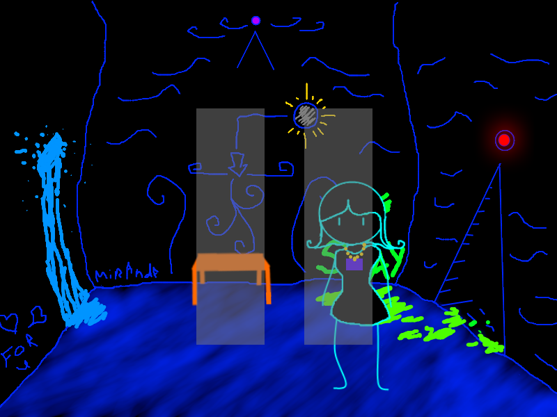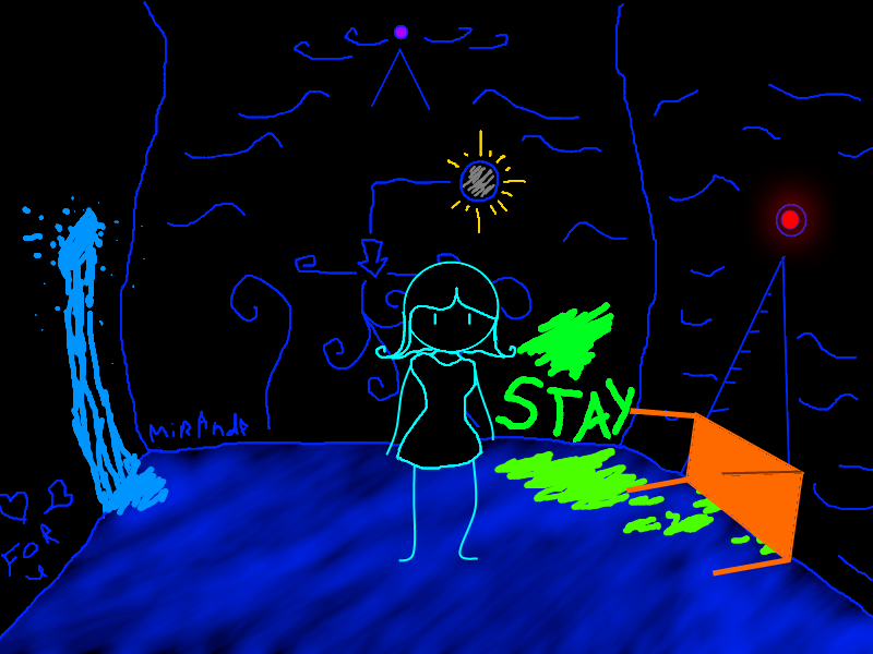 MIRANDA is written on the bottom left of the wall. I think I vaguely remember someone named Miranda...She was a hyperactive little kid, always laughing and jumping around. God she annoyed me.