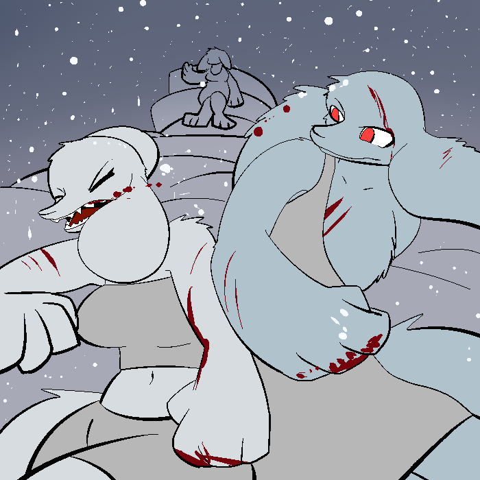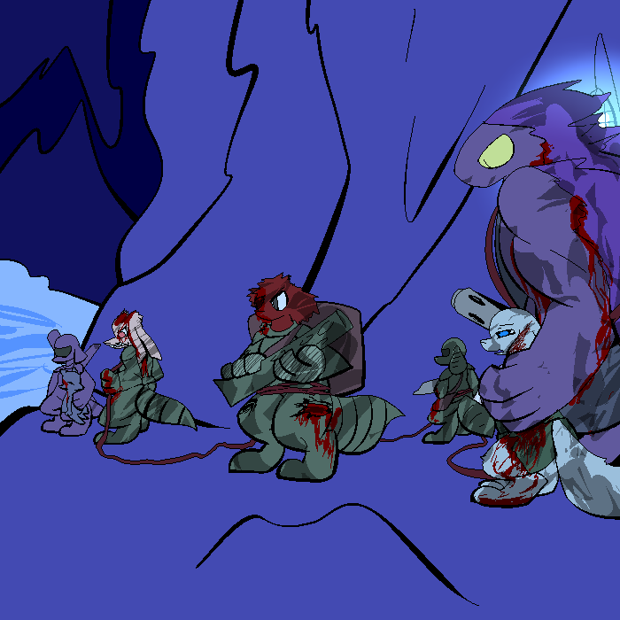 It's cold. Or it is outside. People who I should not recognize, but do, keep me warm. In fact, while it is cold out, I am almost overheating. I think I am starving too, because I have not eaten in what is nearing a day. There is... something I do not know outside. It is moving, and it is large. Its scent is covered with what smells like fresh gore. Everyone is staying still, holding their breath. A few are dead. Everyone else is terrified. Except for me.