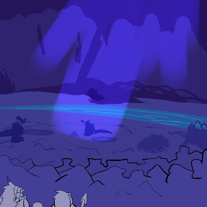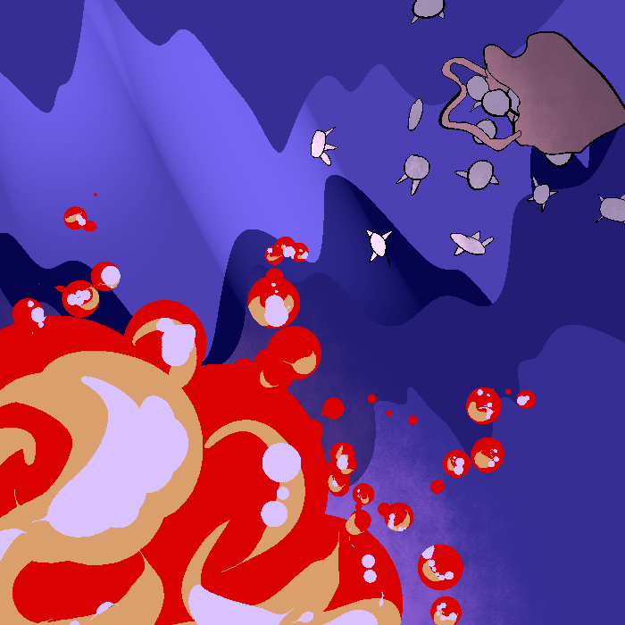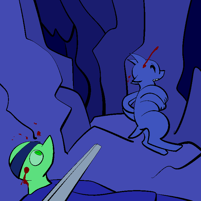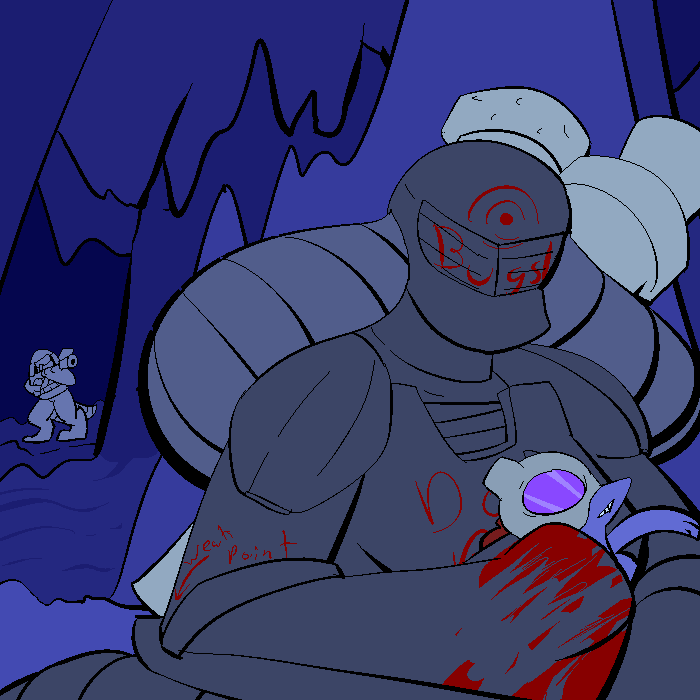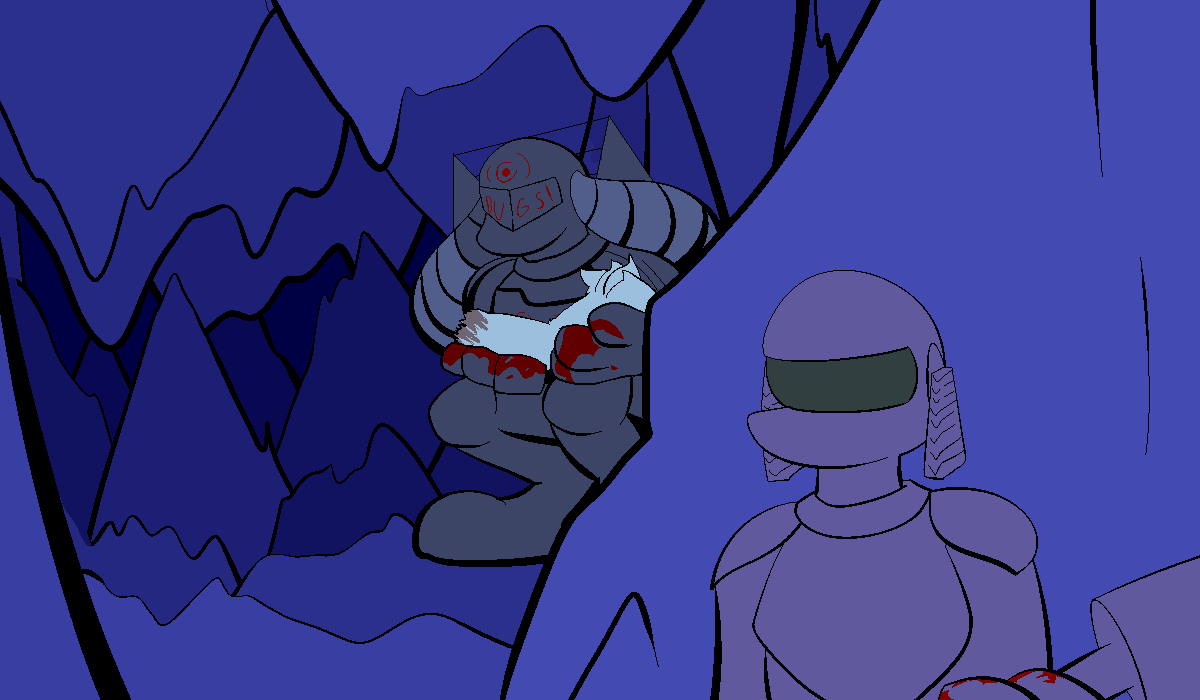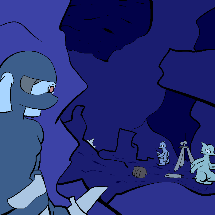 Judging by the toys and quality of my homework on the ground, this is when I was too young for military. Most supplies were given by humans who wished neumono to grow accustomed to aliens before aliens were commonplace. Hence the stuffed animals in the visage of a pomi and a belenosian. And a bear, for some reason. I think I lost my Heef when I threw it off a cliff, thinking it could fly. Not even real heef can fly. Then the toy cars and streets and all that to the side of my bed. The poster above my bed is my Hive's flag and icon.