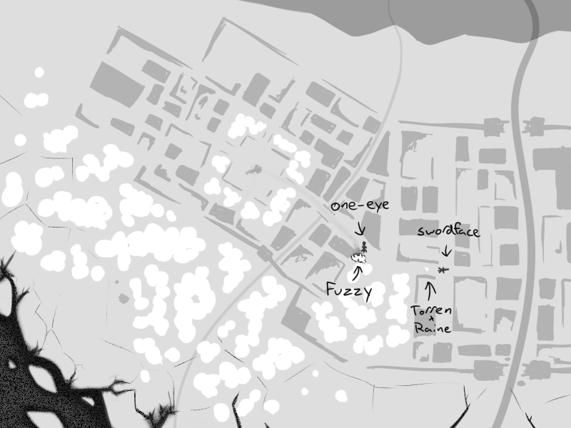 Yell at Torren that the last twin is coming from behind him and he should try to maneuver so that the fuzzy beast is between him and the twin!