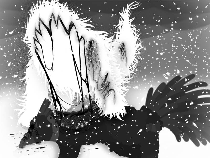 A minute ago, a half-frozen harpy and a winged beast flew past you, high above the clouds.