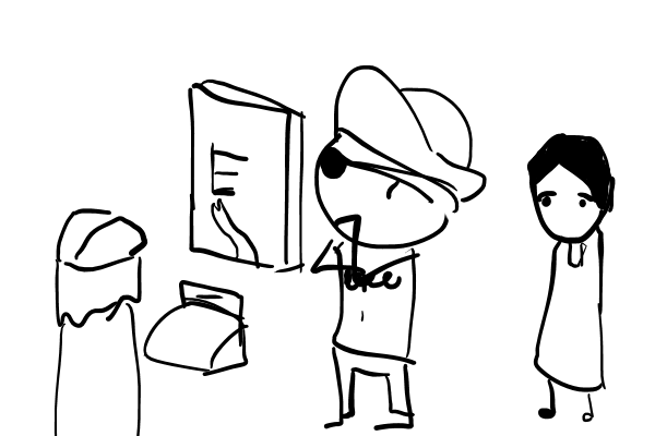 There is a one eyed girl with a note!