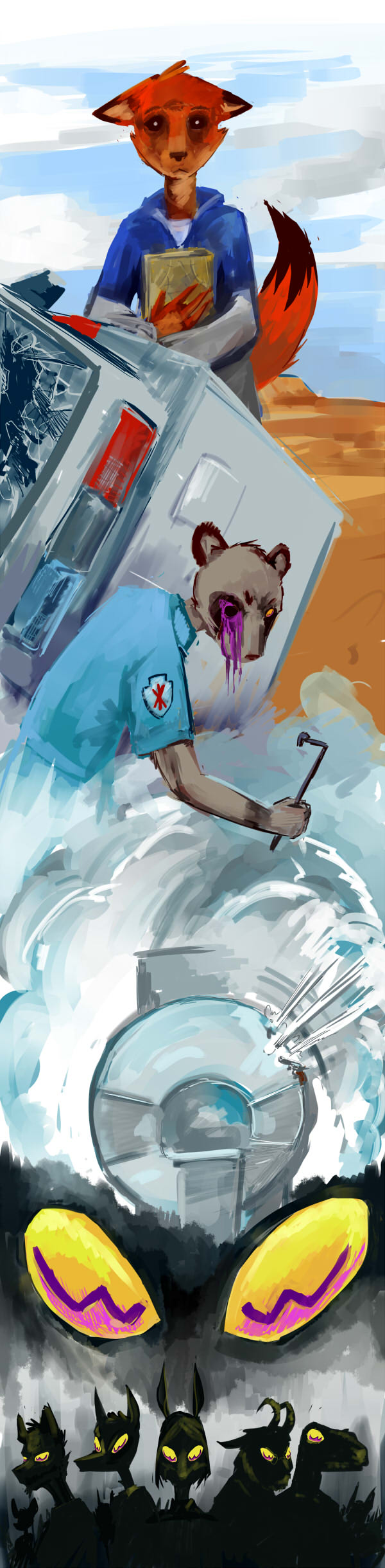 >"Huh? Yeah, now that you mention it. It showed someone finding the Book in some kind of desert, and they were crawling all over the cover. I'm not sure what desert it was supposed to be, but it seemed odd that they would be there, especially underground."