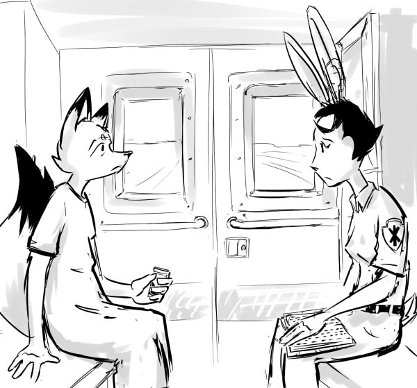 The two of you head inside and while Dr. Slate busies herself with further analyzing the remaining leech, You interrupt Beth's sandwich time for a Q and A.