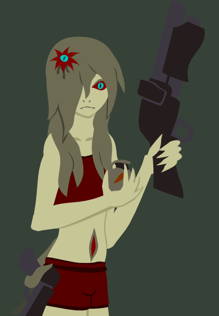 Alice fiddles with the shotgun. In the absence of anything to saw through the trigger guard with, Alice experiments with her giant monster hands. She settles for sliding her feeding tendrils out and gripping the trigger with one. It feels awkward but it's better than nothing.