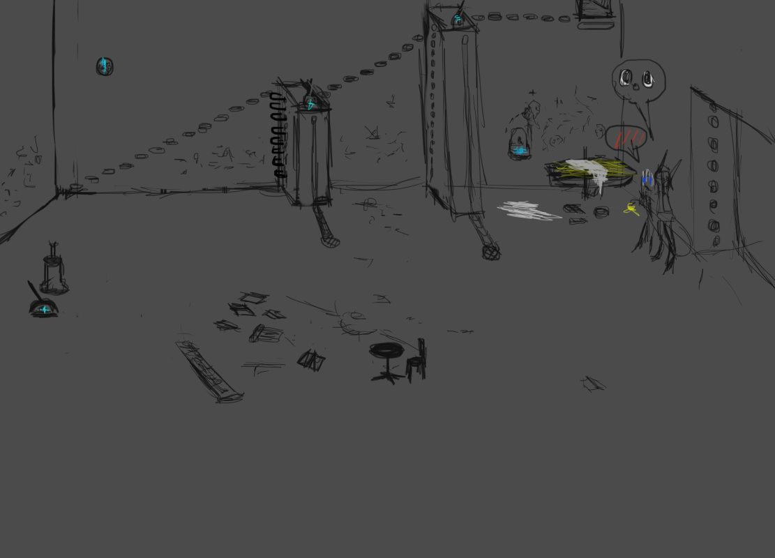 "Whelp, we need to weight this down" she look around the room "isthe chair there heavy enough to weight it?" Marie shake her head "The table...is...bolted"