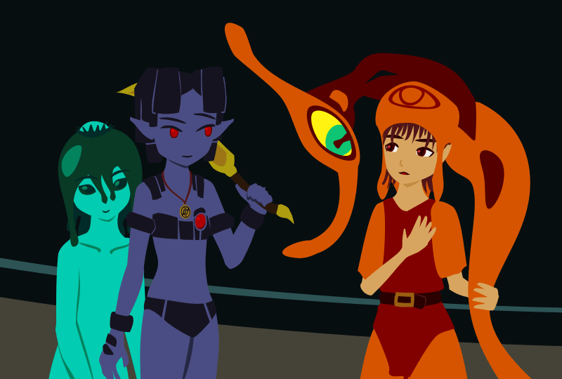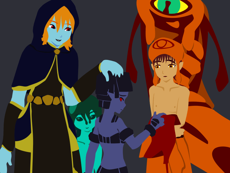 "No, I definitely would not be trying to keep you apart!" I say. I consider physically pushing them together to emphasise my point but that might be read the wrong way and Stargazer doesn't seem to like being touched. "It's just... we all need to fit together now. We all have to get used to working with each other. It's not just a dungeon we're building out here, it's our future."