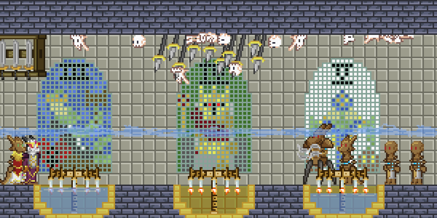 What's with the masked janitors? My immediate thought is the portal is under that giant statue but is that actually the most important person here?