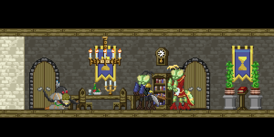 She’s with that priest comforting some lizard suffering from arachnophobia that had a panic attack. Don’t worry, the lizard is fine… Now, what are you doing down here? Isn’t this place off limits? …and did you wax your mandibles?