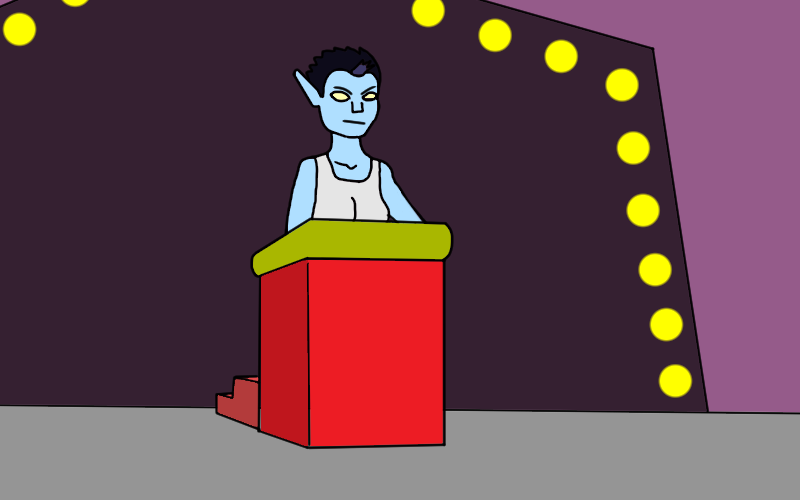 Frela Opim. My older sister. She's super popular and.. basically flaunts around constantly when on stage. I can't even watch her performances usually. That said, awful fighter, super weak. But she is uh.. 'charismatic' when she needs to be.