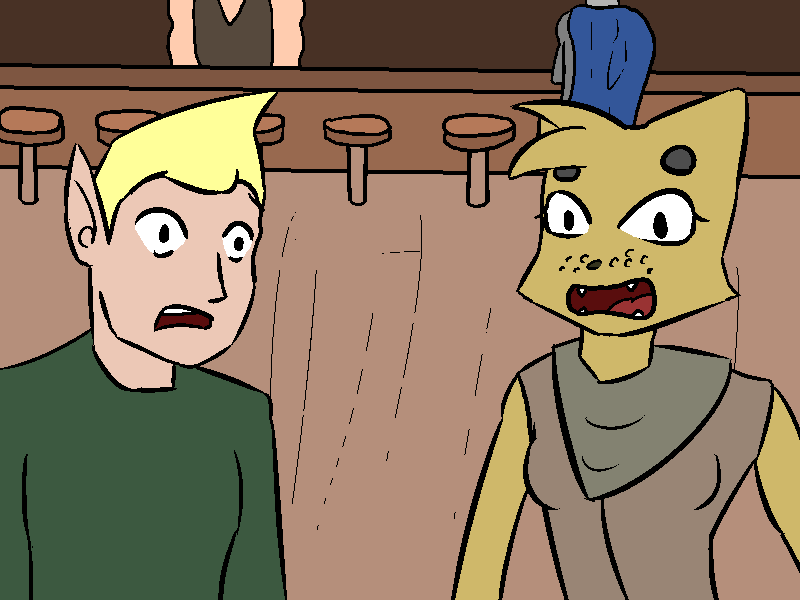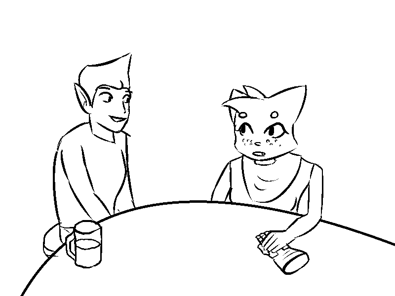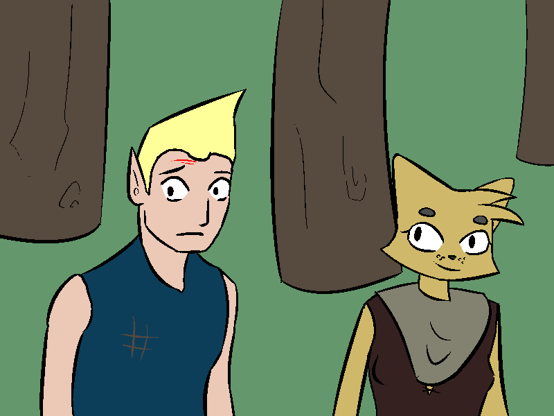 Oh you, you're going to make me blush. But for real words only have power if you give it to them... or if it's an incantation to a spell but that's something else entirely. Sorry about dinner it was just that the atmosphere was so thick we had to do something so we decided to break the ice... with a hammer. As for some shit that Cala has been through, well she did have an assassin sent after her yesterday because she has us. By that I mean we're part of that whole "quest for some magic doodad to give to the king" thing but thing was Cala wasn't meant to be a part of it. What happened was she was in the right place and the right time and was given the chance to get us and won... That pissed a lot of noble families off. So if you want to know what our goals are they're basically to travel the land and find a powerful magical item... or at least something really damn impressive, and give it to the king. She is competing against nobles, think a few wealthy merchants were in there, and some of these guys have ARMIES helping them. And then their is Cala, who just has us and milo to help. And after seeing some of the crap that Cala want through because she simply came out of the blue we do want to see her win just to spit in the faces of everyone that is after her simply because she win a lottery. Oh and she's coming to speak to you to say she's sorry and on that note so are we.
